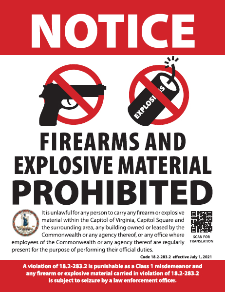 The presence of magnetometers (walk-through device), X-ray machines for bags, and hand-held metal detector wands, will be in place for the screening of all Perimeter Center personnel and visitors. These devices will support the enforcement of Virginia’s prohibition of firearms and explosive material within buildings owned or leased by the Commonwealth of Virginia, as outlined in Code of Virginia 18.2-283.2.